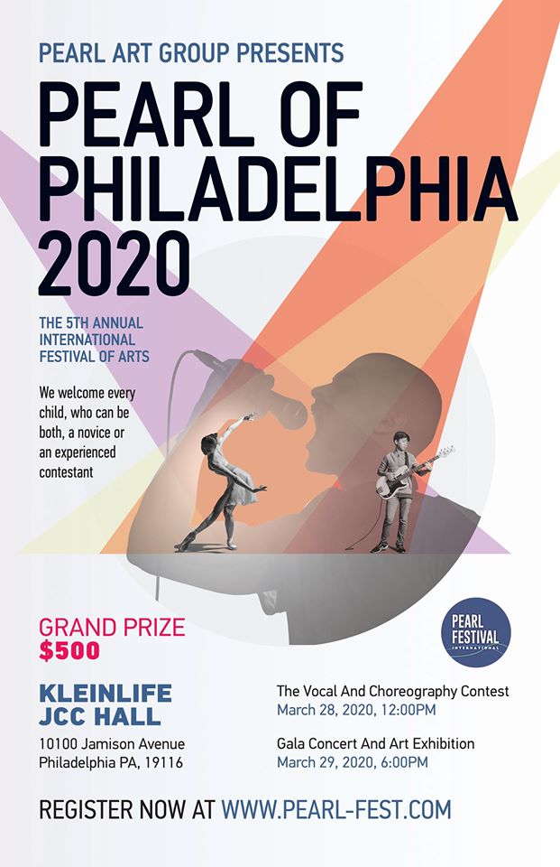 ANNOUNCMENT!!! DUE FORCE MAJOR SITUATION THE COMPETITION WILL BE HELD IN MARCH 29TH, 11:00 AM Pearl Art Group Presents the 5th Annual International movement Festival of Arts - Contest "Pearl of Philadelphia 2020". Contests will be held on March 28th, 2020 12:00PM. The Gala-Concert and Art Exhibition-Auction will be held in Kleinlife JCC Hall on …